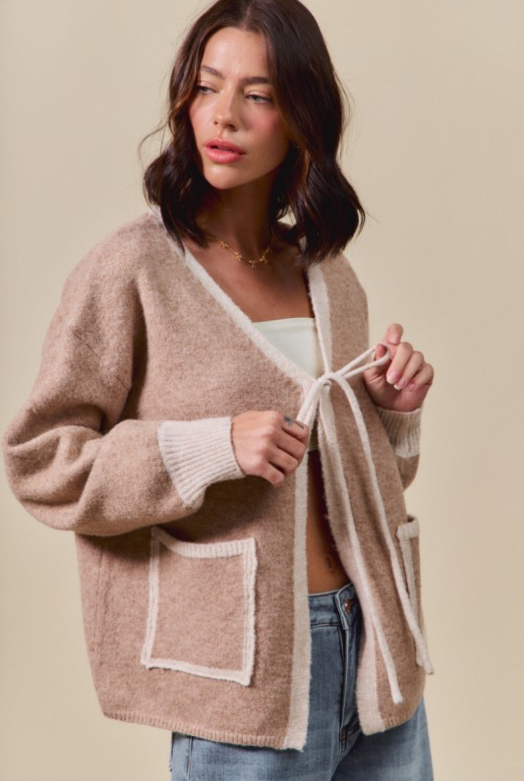 taupe sweater cardigan